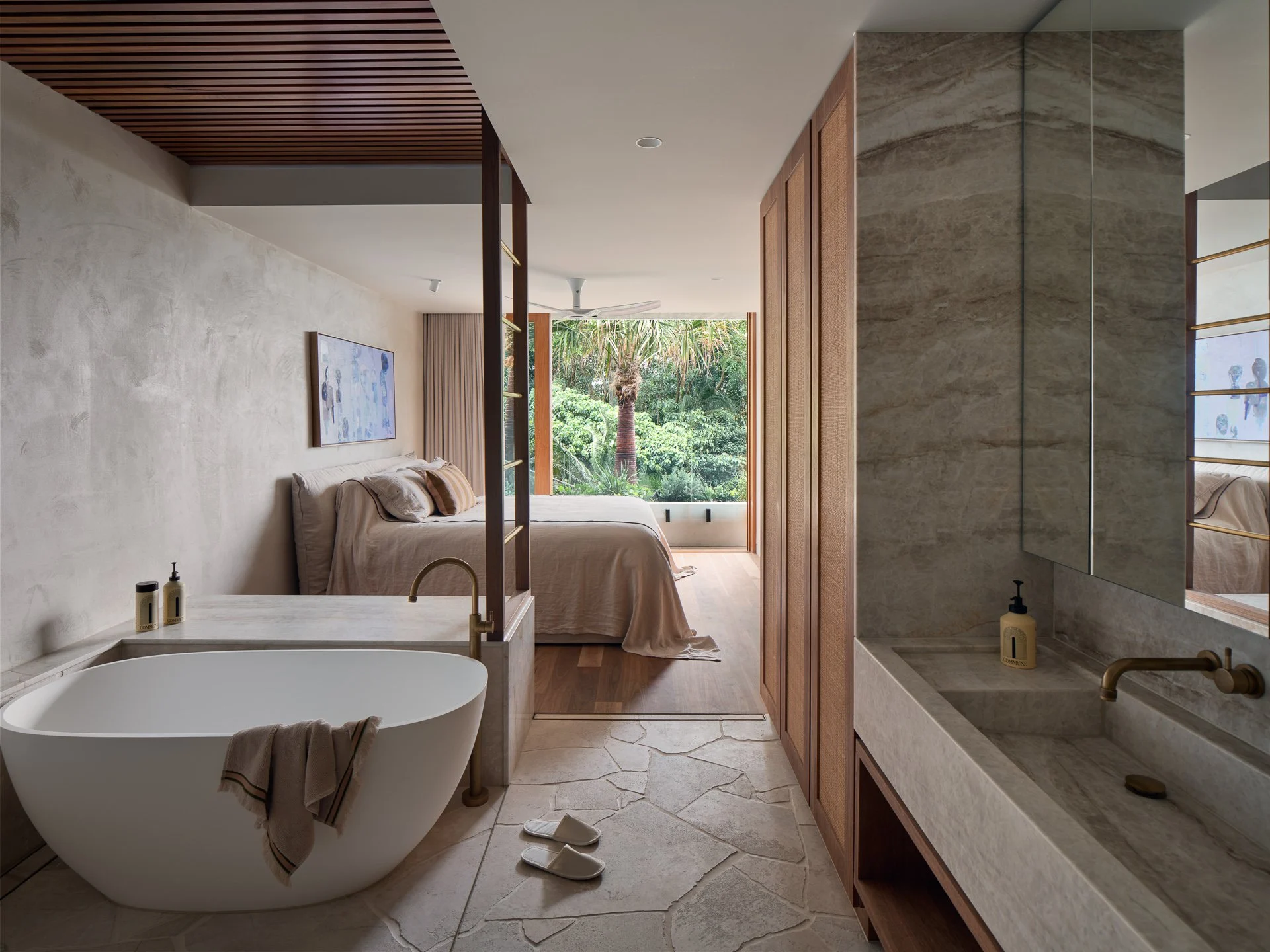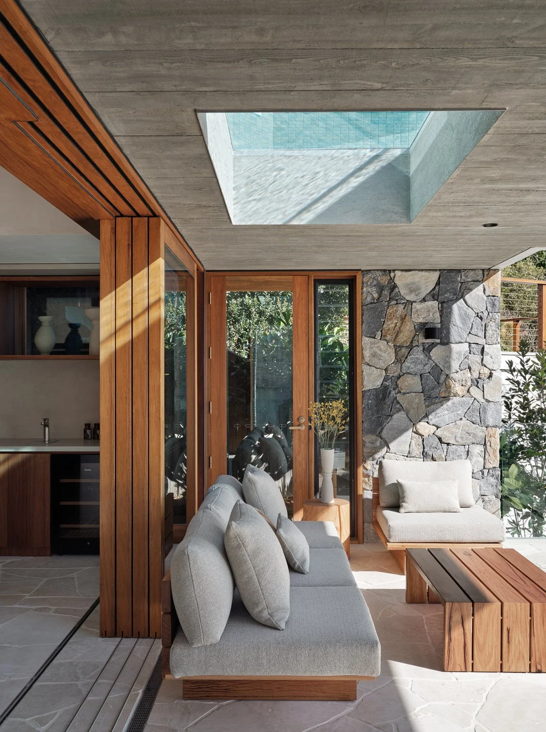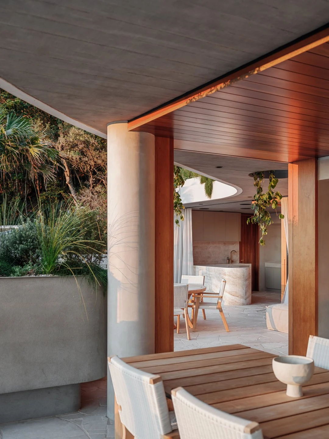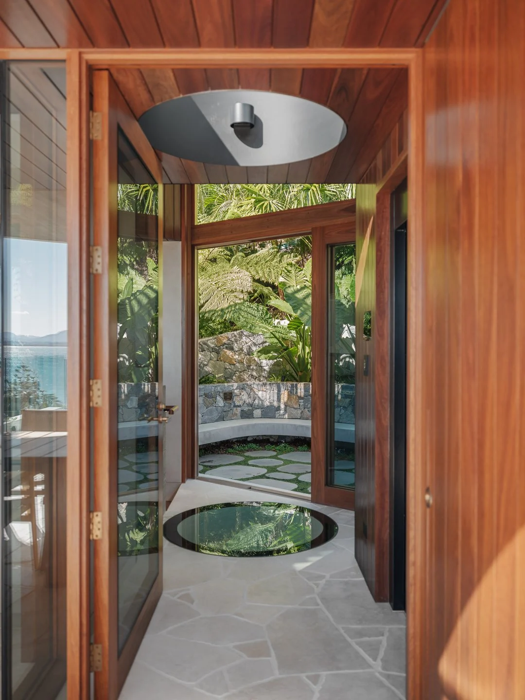 Terraces open to a private rainforest courtyard, while the rooftop takes centre stage — a spectacular space designed for sun-drenched afternoons and long, relaxed evenings. A temperature-controlled pool, lounge, bar, and dining area overlook the ocean, forming an elevated oasis for gatherings, celebrations, or simply retreating into the view.