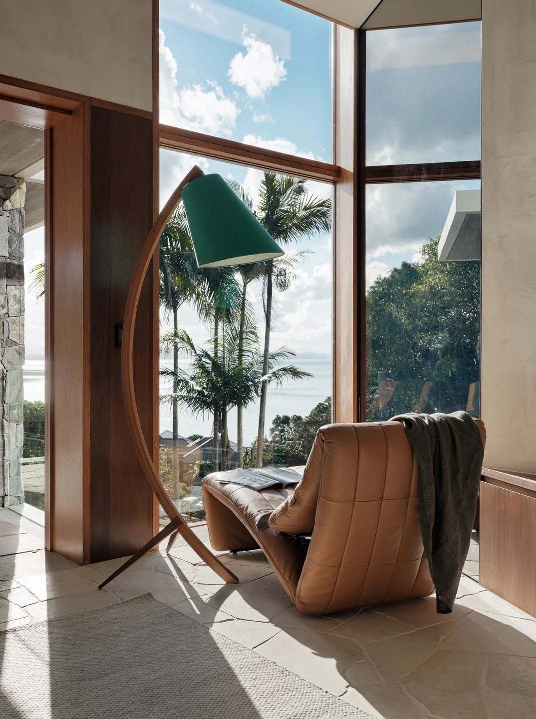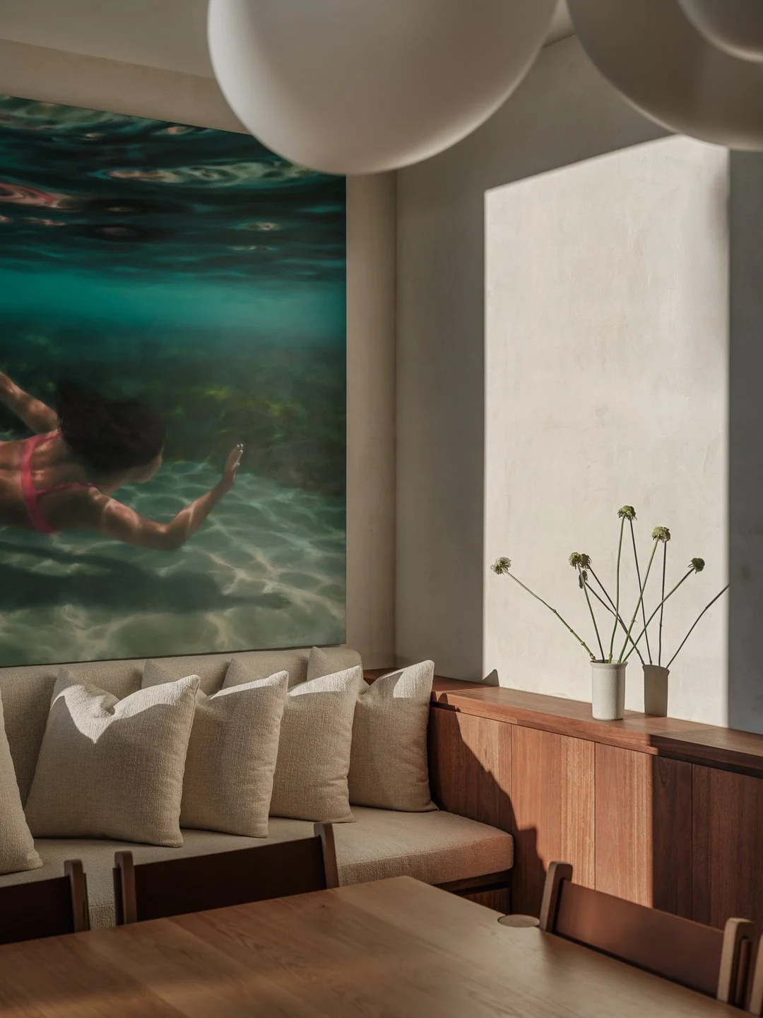 Designed by award-winning architect Shaun Lockyer, every detail of the retreat has been shaped with intention. Soft, tonal interiors echo the surrounding landscape, while sculptural finishes and expansive glass capture shifting ocean light throughout the day. Across multiple levels, two self-contained residences flow seamlessly between indoor comforts and the outdoors, creating a retreat that invites you to slow down, reconnect, and savour the rhythm of Byron Bay.