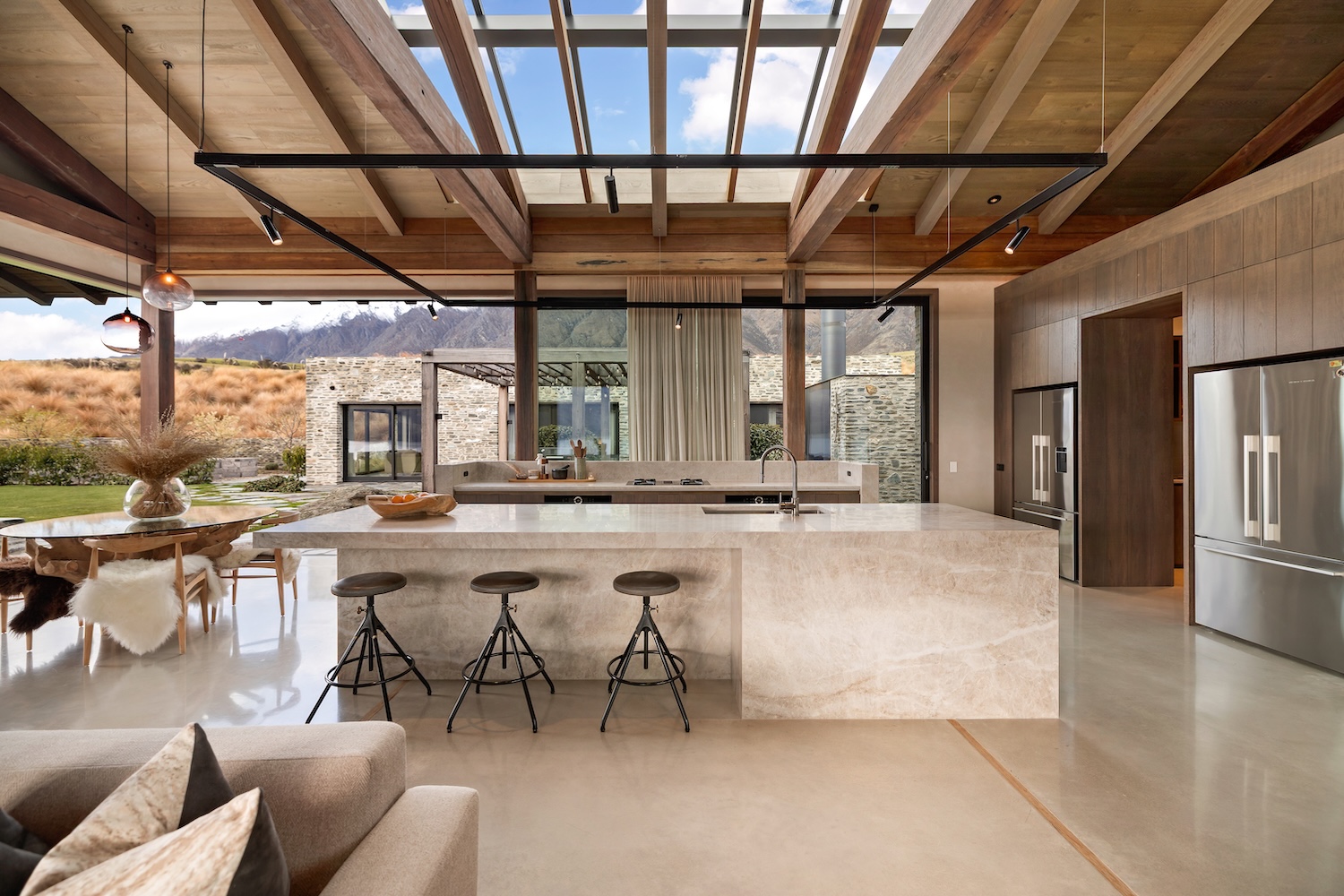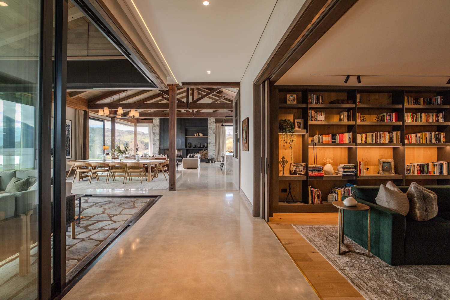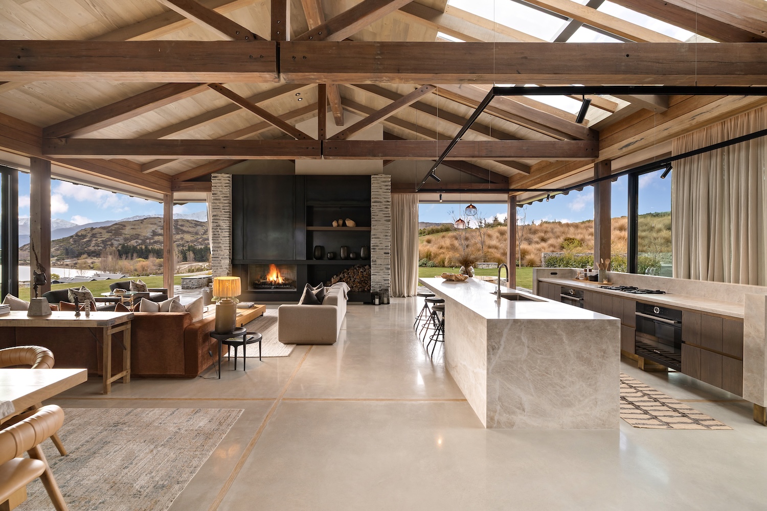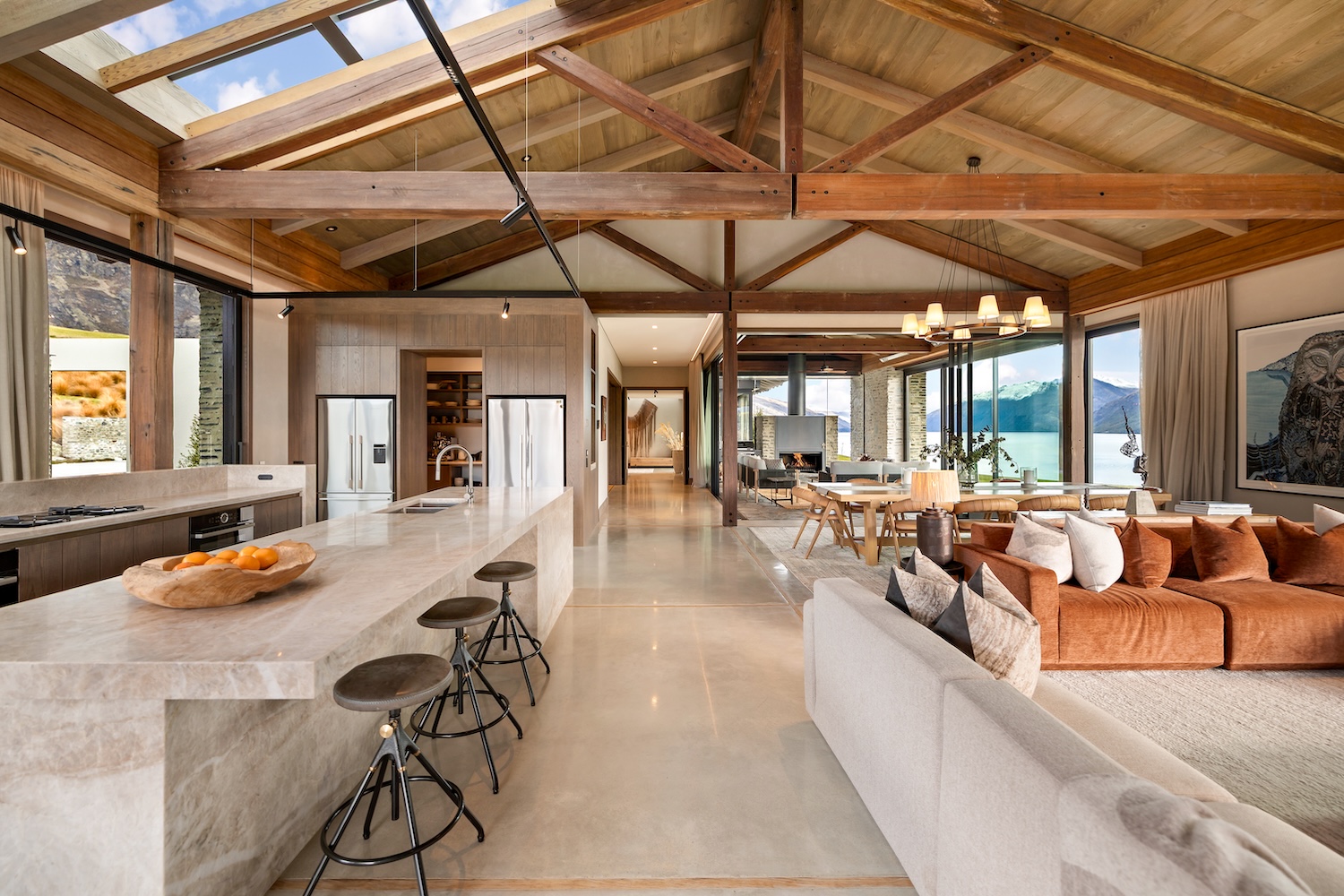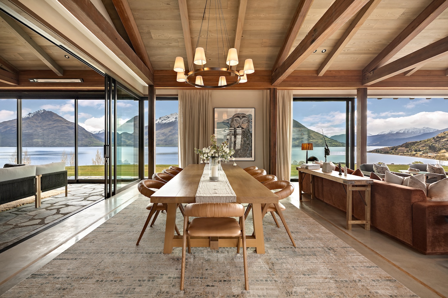 Located in the sought-after enclave of Jack’s Point, just 15 minutes from central Queenstown, this expansive private home is ideally suited to families and groups seeking high-end Queenstown accommodation with room to truly unwind. Cleverly designed across several wings, the layout balances connection and privacy with ease, making it equally suited to entertaining and quiet retreat.