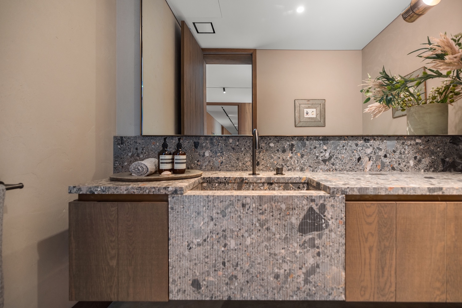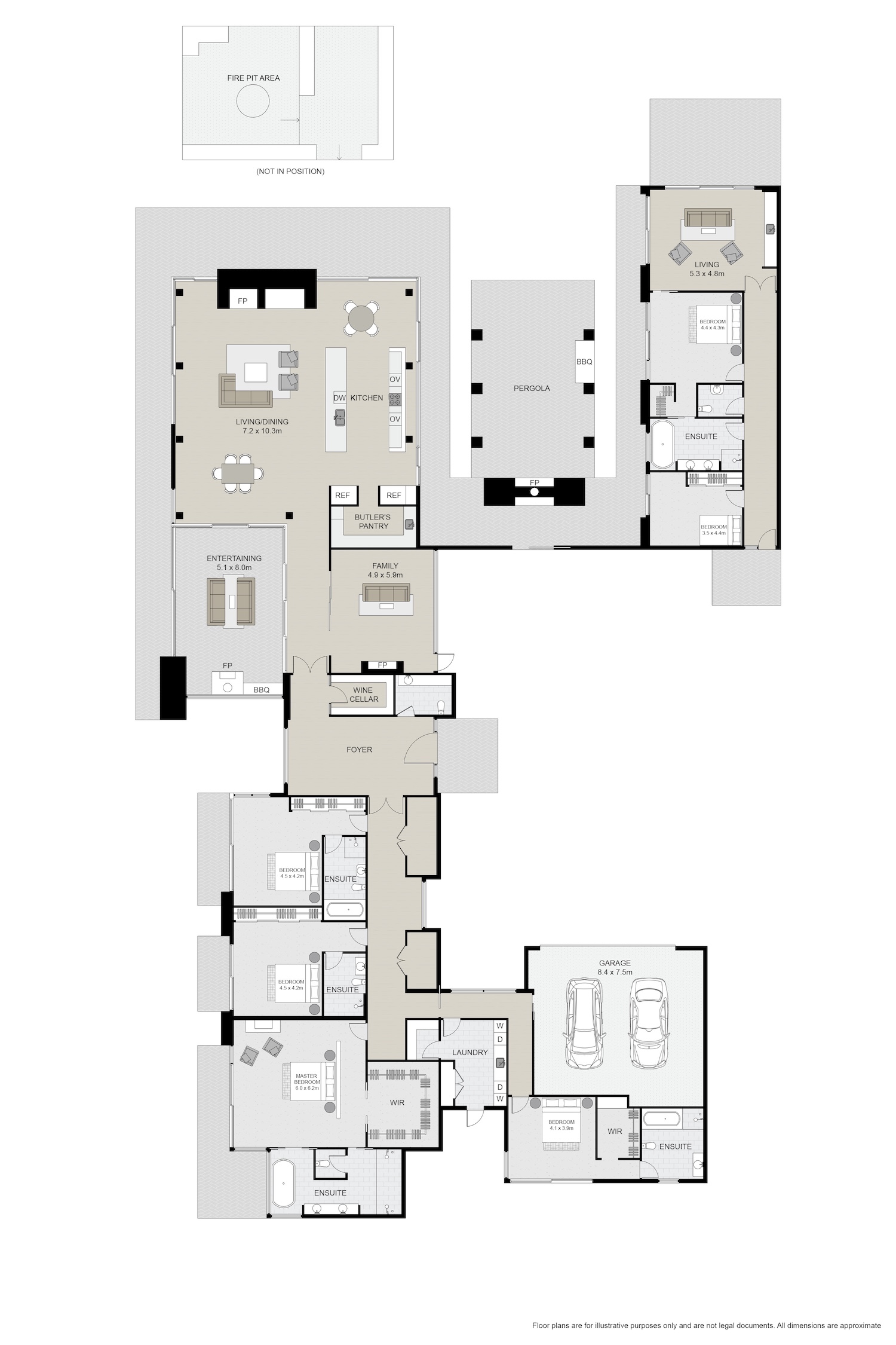 At the centre of the home, a generous open-plan kitchen, dining and living area forms a natural gathering place. Complete with a fully equipped kitchen and butler’s pantry, it’s perfectly set up for shared meals or private chef dining experiences. A series of cozy lounges, a library nook, and a walk-in wine cellar add layers of comfort and flexibility throughout the home.