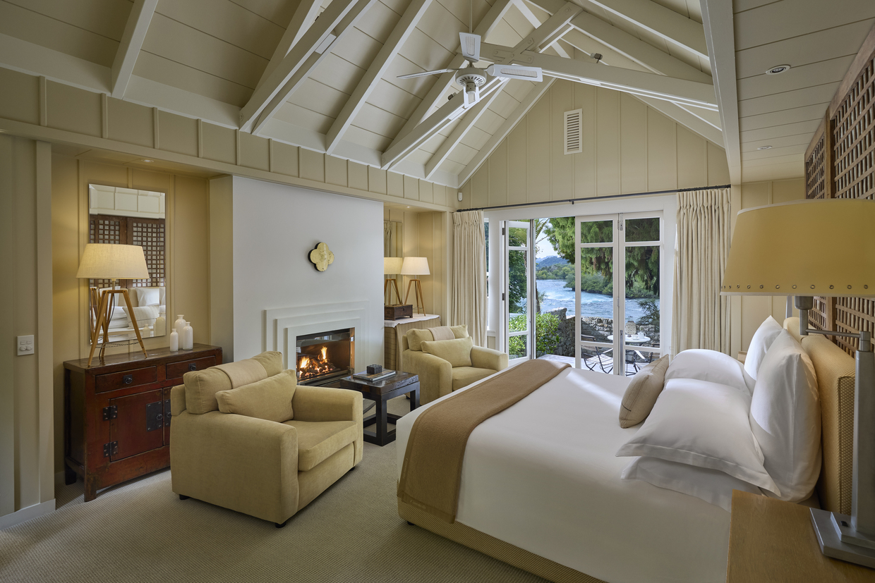 Two of the guest suites face the river while the other two enjoy a beautiful private courtyard garden aspect. These gardens also feature one of the magnificent outdoor fireplaces that can be found tucked away in the environs of Huka Lodge.