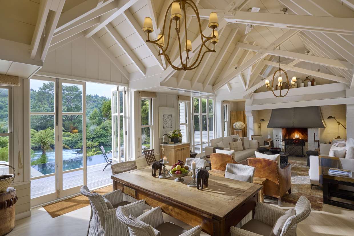 The Cottage displays work by some of New Zealand’s foremost artists – Max Gimblet, Mervyn Taylor, Don Binney, Paul Dibble and Dick Frizell to name a few. The entire retreat is furbished generously with unique pieces chosen for their comfort, beauty and history – like the wonderful 1920s French oak chairs in the living room.