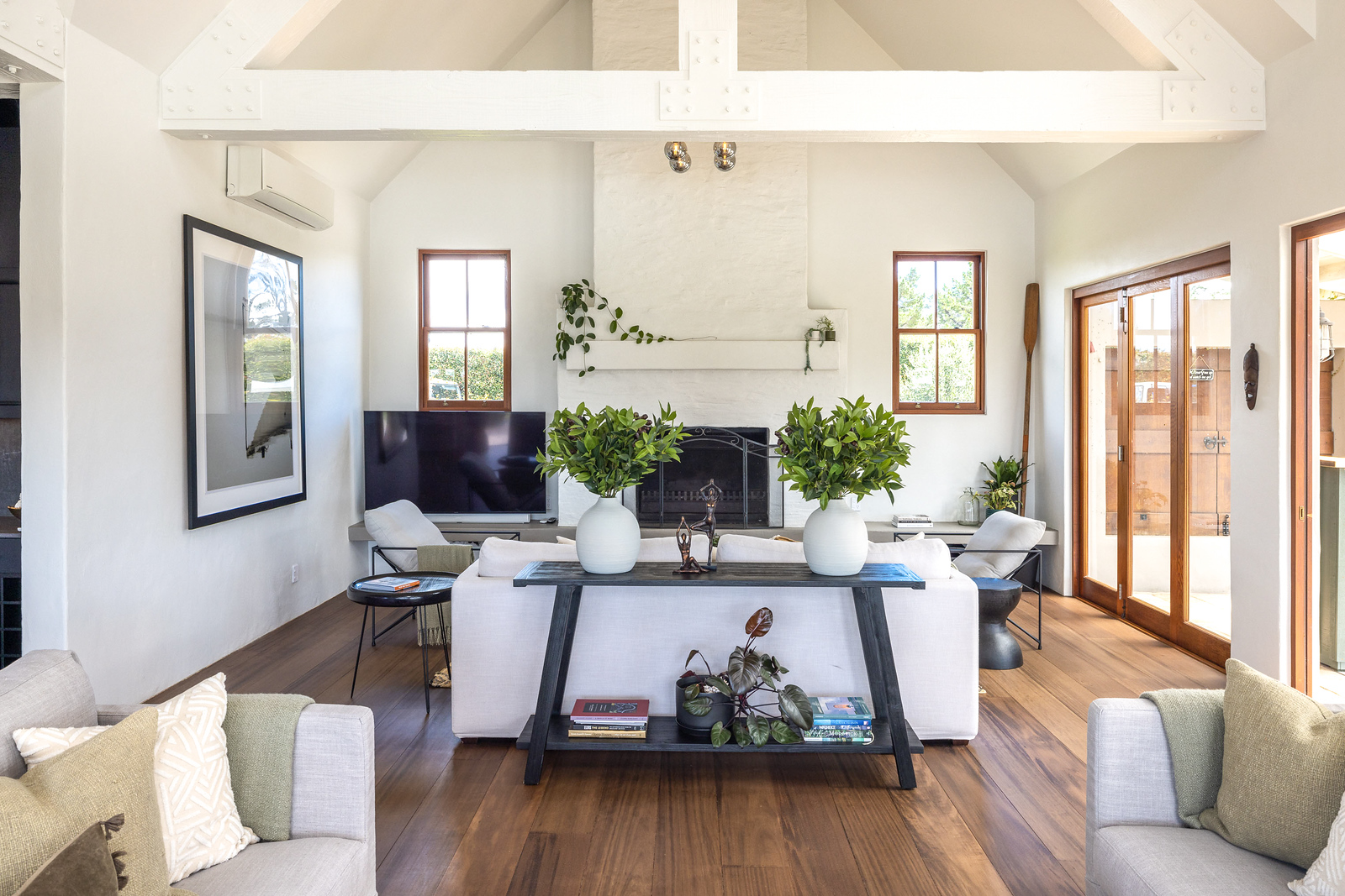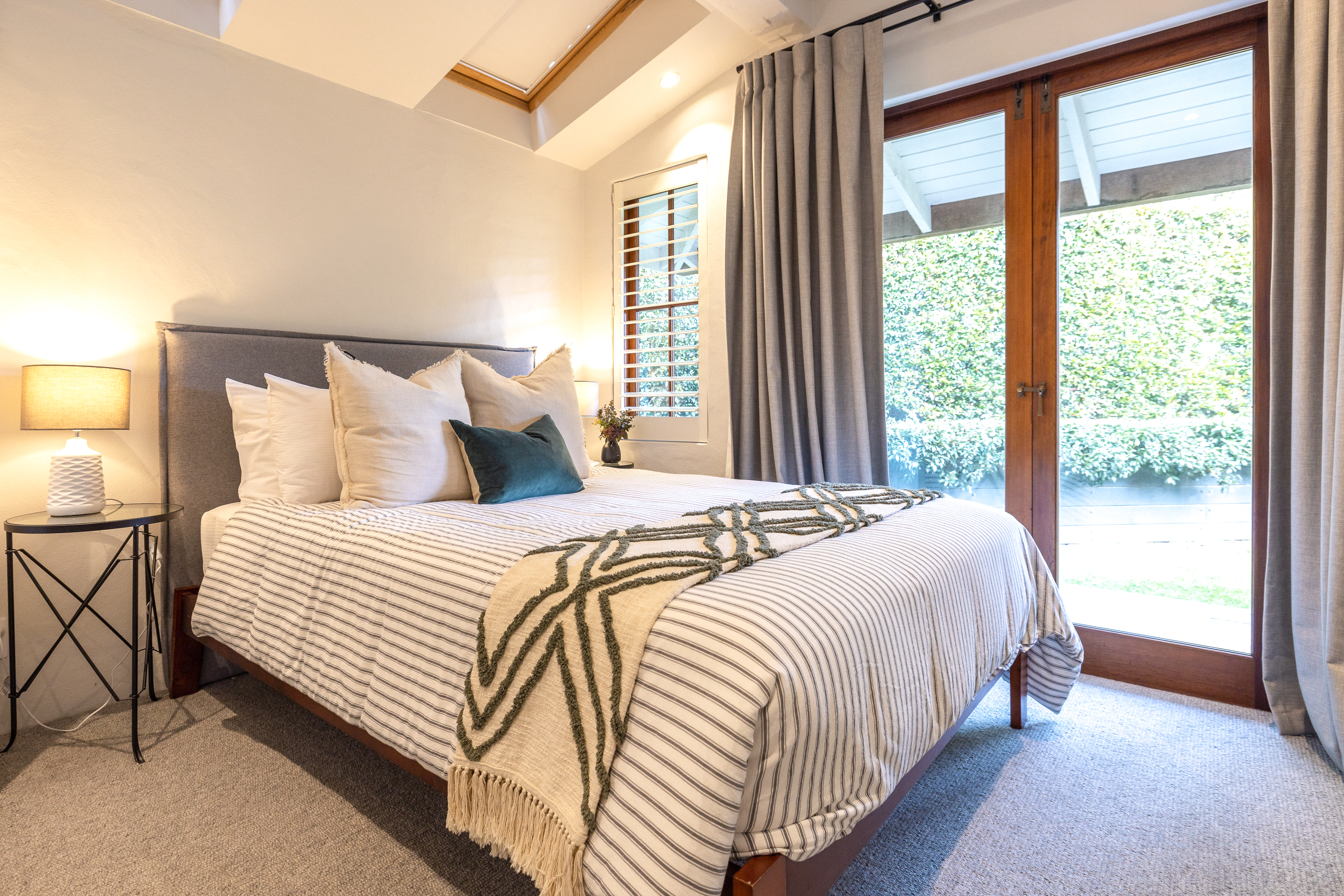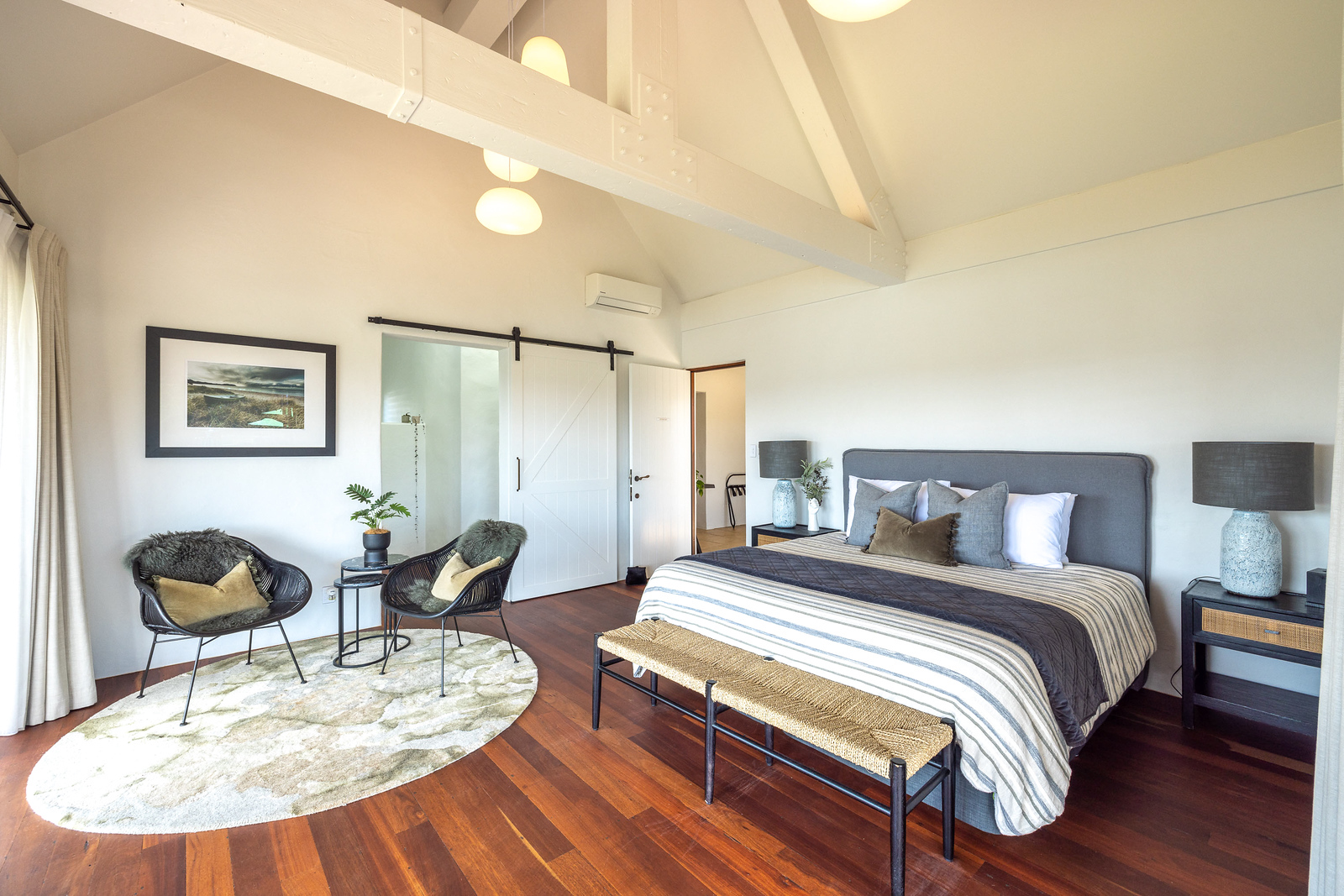 Inside, the house is contemporary, elegant and beautifully appointed, with soft neutral tones contrasted by deep black walls, French doors throughout, and generous open-plan living spaces that flow onto wide decks and manicured gardens. There are seven spacious double bedrooms, each with its own ensuite, along with a separate self-contained guest house that sleeps up to four. A chef’s kitchen anchors the interior, fully equipped for serious entertaining - whether you’re hosting a long weekend with friends and family, marking a milestone trip with multiple generations in tow, or settling in for a multi-day retreat.