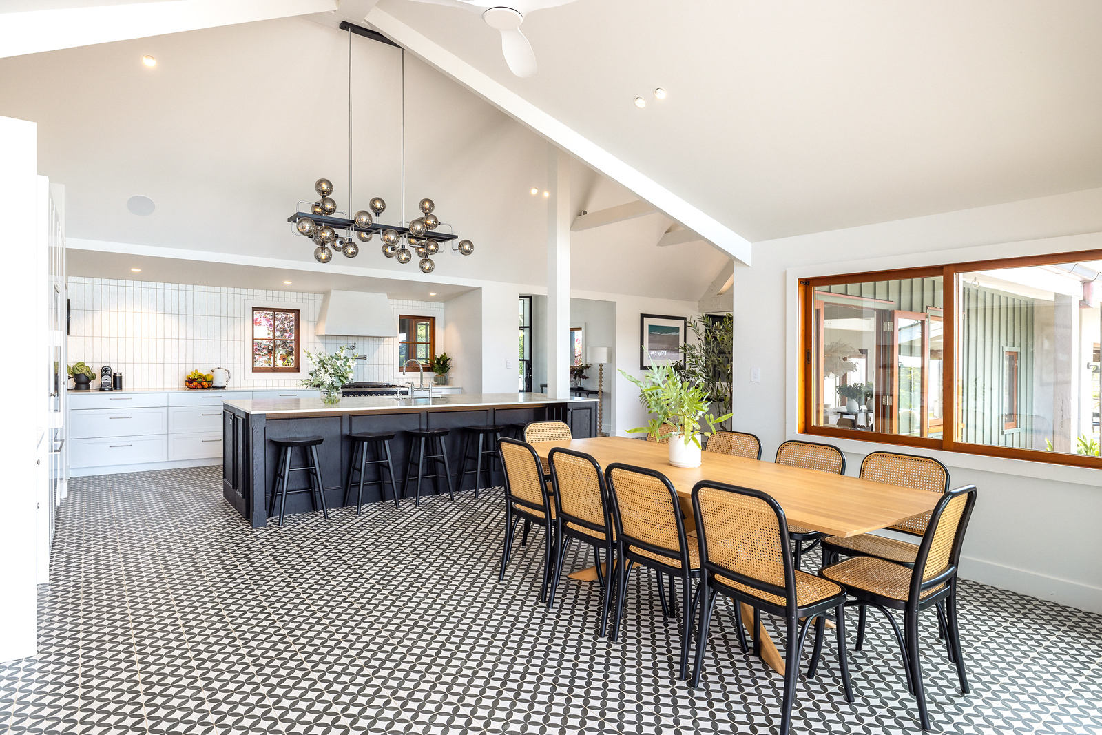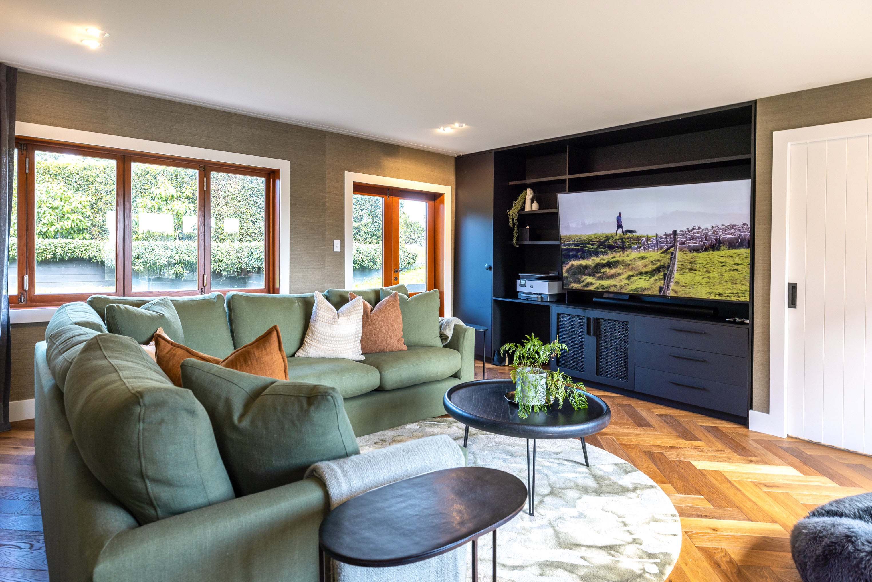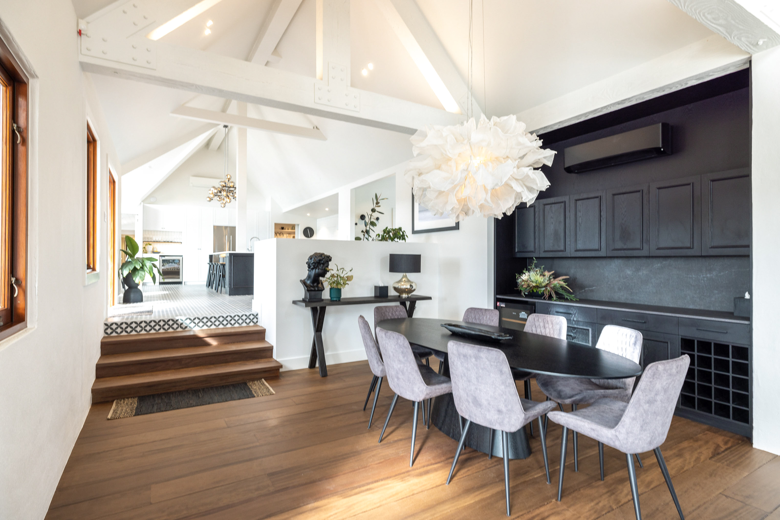 Inside, the house is contemporary, elegant and beautifully appointed, with soft neutral tones contrasted by deep black walls, French doors throughout, and generous open-plan living spaces that flow onto wide decks and manicured gardens. There are seven spacious double bedrooms, each with its own ensuite, along with a separate self-contained guest house that sleeps up to four. A chef’s kitchen anchors the interior, fully equipped for serious entertaining - whether you’re hosting a long weekend with friends and family, marking a milestone trip with multiple generations in tow, or settling in for a multi-day retreat.