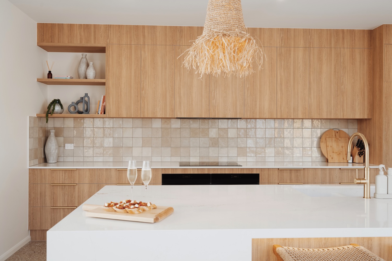 Upstairs, four generously proportioned bedrooms — two with private ensuites — sit alongside a media room, a quiet workstation and an additional powder room, giving families or friends ample privacy and flexibility. Downstairs, light floods through expansive glass walls and bi-folding doors into the great living spaces, where a fully equipped modern kitchen adjoins open lounges and dining areas. A further queen bedroom with ensuite offers convenient ground-floor comfort for those who prefer easy access.