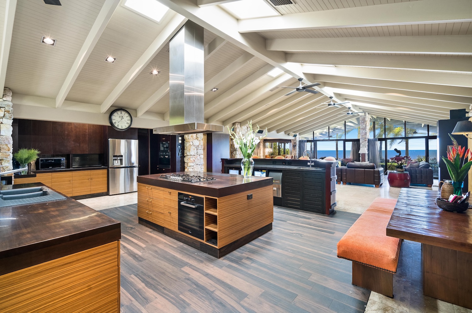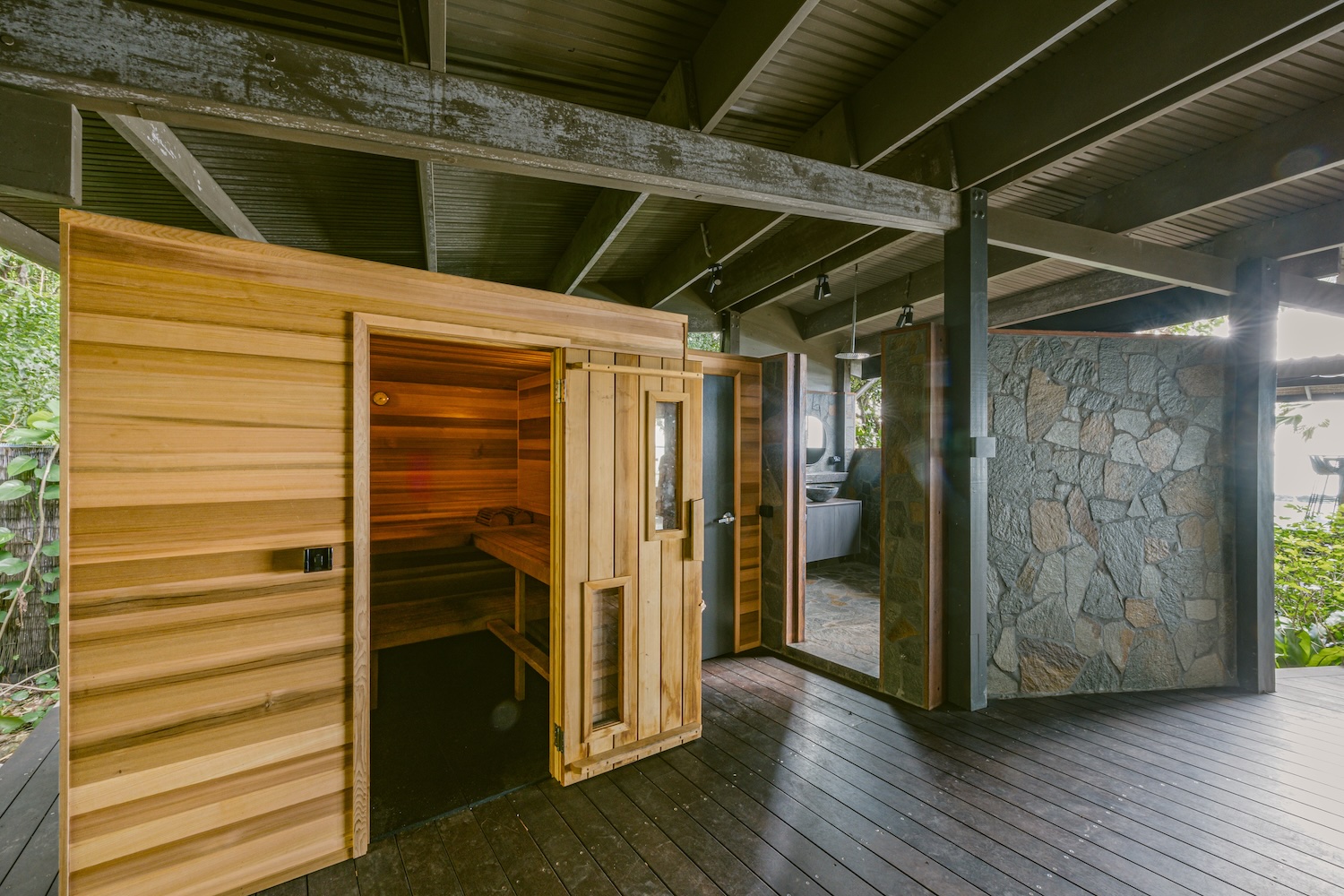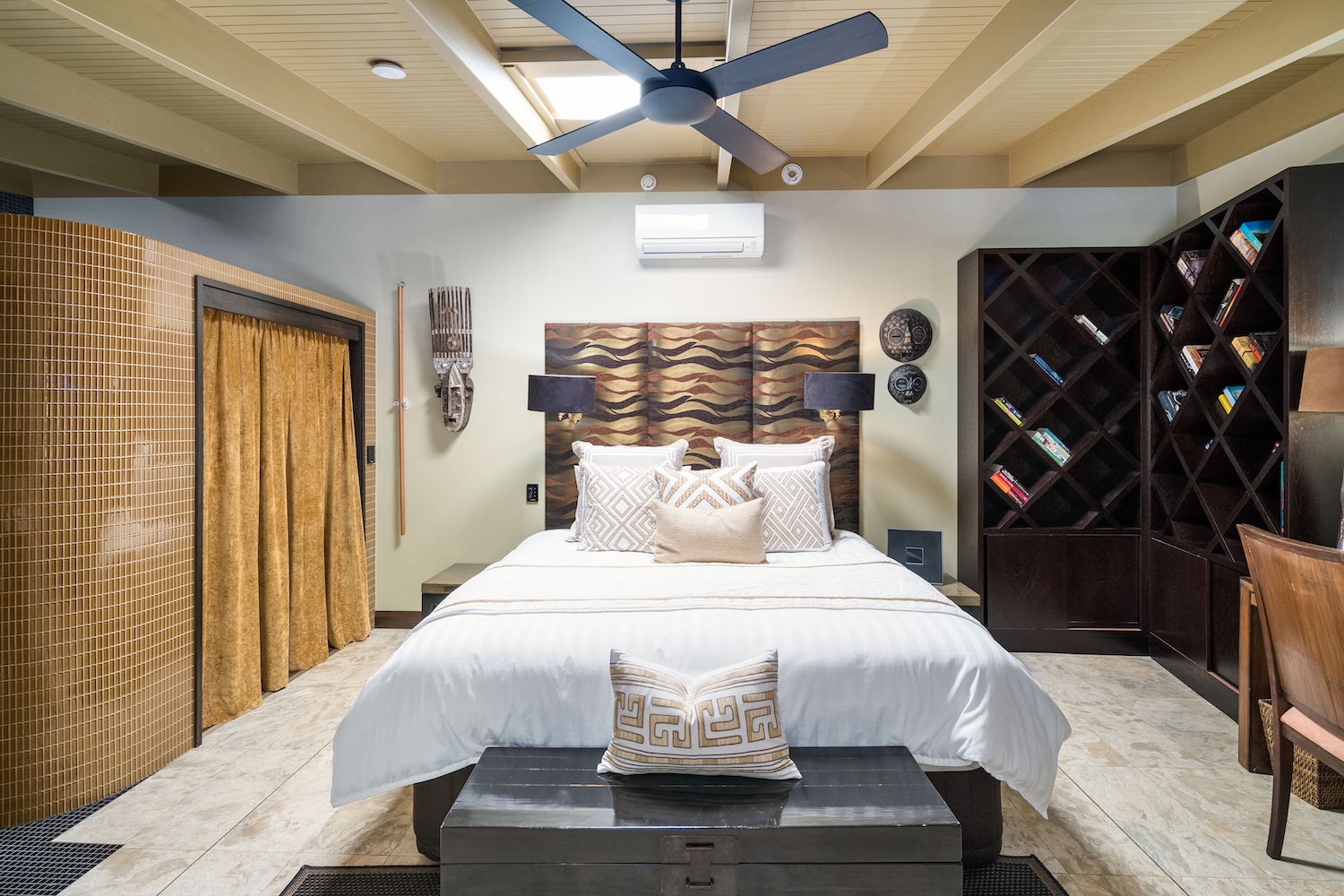 Outdoors, the spirit of the property truly comes to life. A 13-metre climate-controlled pool is framed by tropical gardens and timber decking, inviting sun-drenched afternoons and leisurely swims. A poolside dining pavilion with a fully equipped outdoor kitchen becomes a natural gathering point, while three distinct bar areas — including one privately positioned at the ocean’s edge — elevate every moment spent by the water.