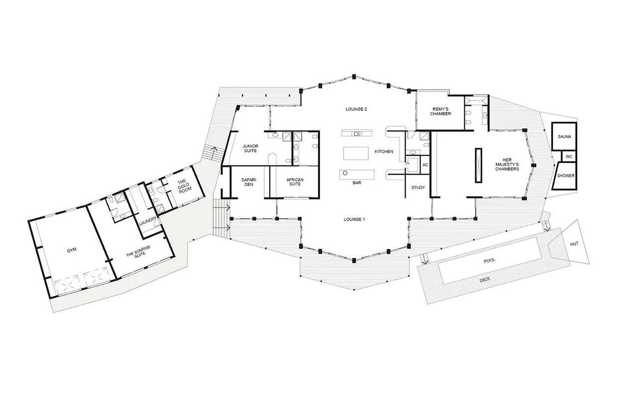 Encompassing more than 1,000sqm of beautifully appointed living, the residence offers a remarkable sense of space and privacy. Multiple indoor and outdoor lounges encourage guests to unwind at their own pace, while grand dining areas, a library, den, games room and piano set the scene for memorable days and unhurried evenings. A fully equipped gym and sauna provide a considered balance between wellness and leisure, and six individually styled suites accommodate up to 12 guests in opulent comfort.