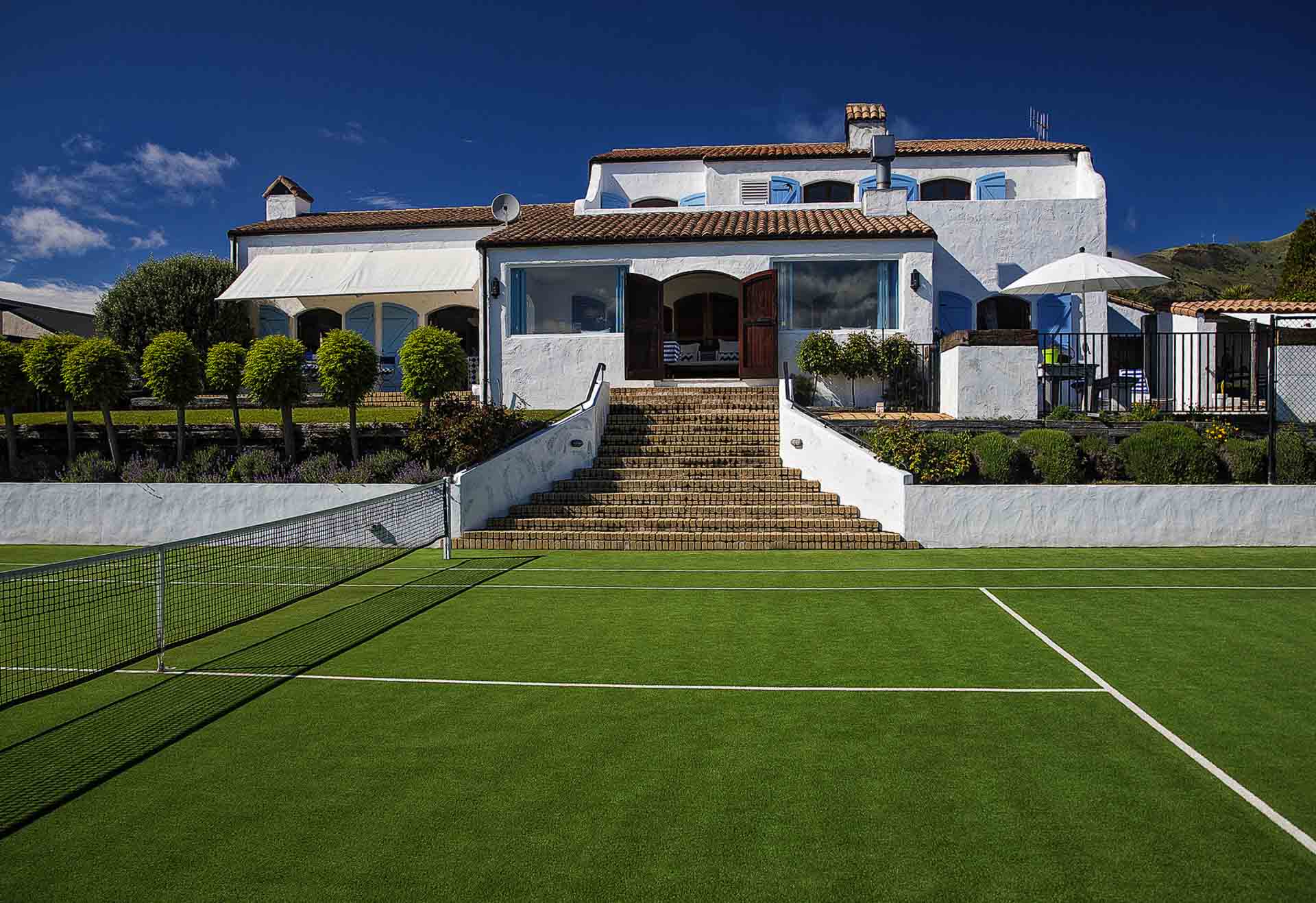 The villa also has plenty of activities on offer on site, with a private tennis court, hot tub, and outdoor fireplace.