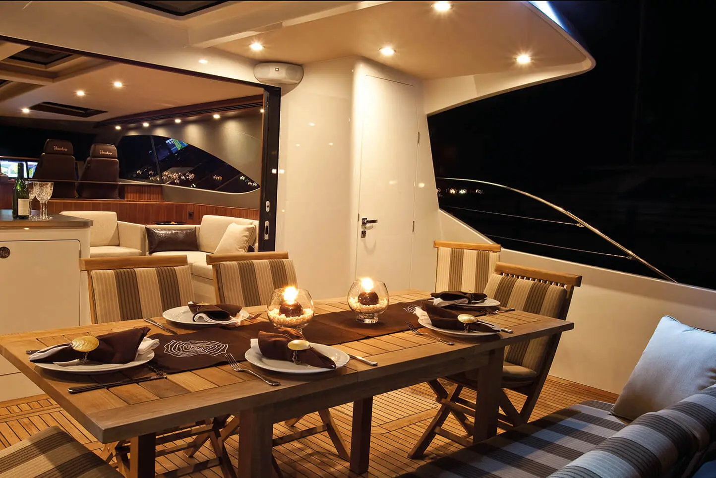F5 is handsomely equipped for diving, fishing, relaxed cruising or all-out adventure. And with seamless indoor/outdoor flow F5 is an entertainer’s delight. The cockpit, galley, saloon and helm flow through to a large outdoor area. Altogether F5 can comfortably host up to 30 people on a day trip and sleeps up to six guests overnight.